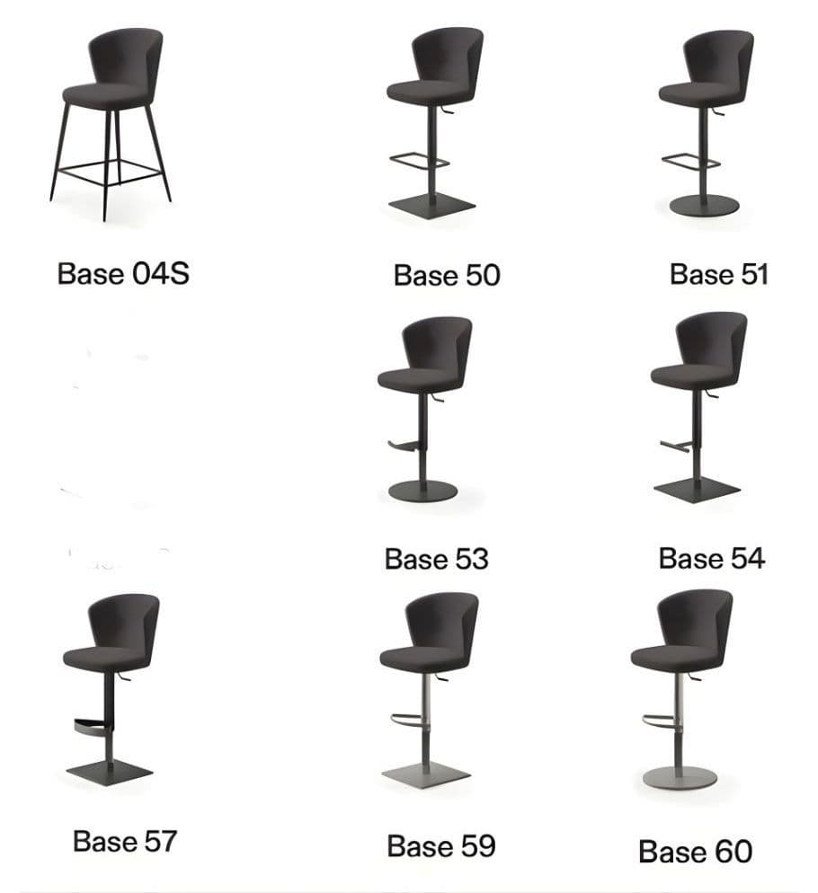 The Ines Adjustable Bar Stool is a Very Comfortable, High Quality Bar Stool that is ideal for use at a breakfast bar or a drinks bar. There are 6 different designs of base available (See picture below). All of the bases have a heavy weighted steel plate (10 kg Weight) at floor level, which means that the stool is very stable.